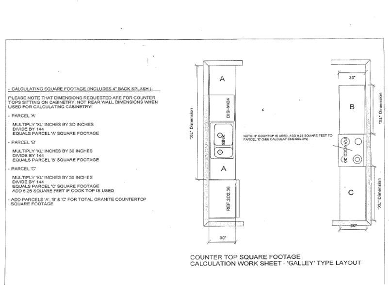 (You may use the diagrams below as a guide to help estimate your kitchen squarefootage):